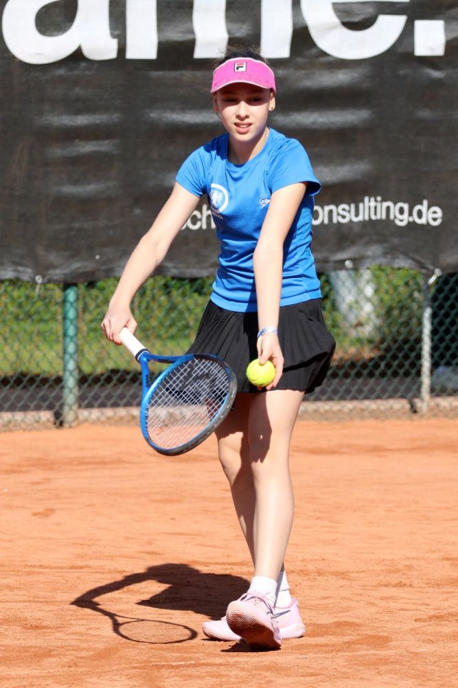 U14 weiblich: Ein qualitativ hervorragendes Feld. Nach knappen Halbfinalsiegen im Match-Tiebreak durch Alexandra Ilyunina (BSV 92) und Lilly Gessler (TC Blau-Weiss) gegen Melina Kath und Melanya Rolya, sicherte sich Lilly mit einem souveränen 6:2, 6:1 im Finale den Titel.