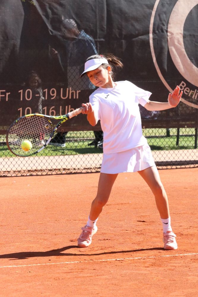 U11 weiblich: Nina Fallahian (Reinickendorfer Füchse) wurde ihrer Favoritenrolle gerecht und schlug Alyara Husmann (TC Blau Weiss) deutlich mit 6:0, 6:1.