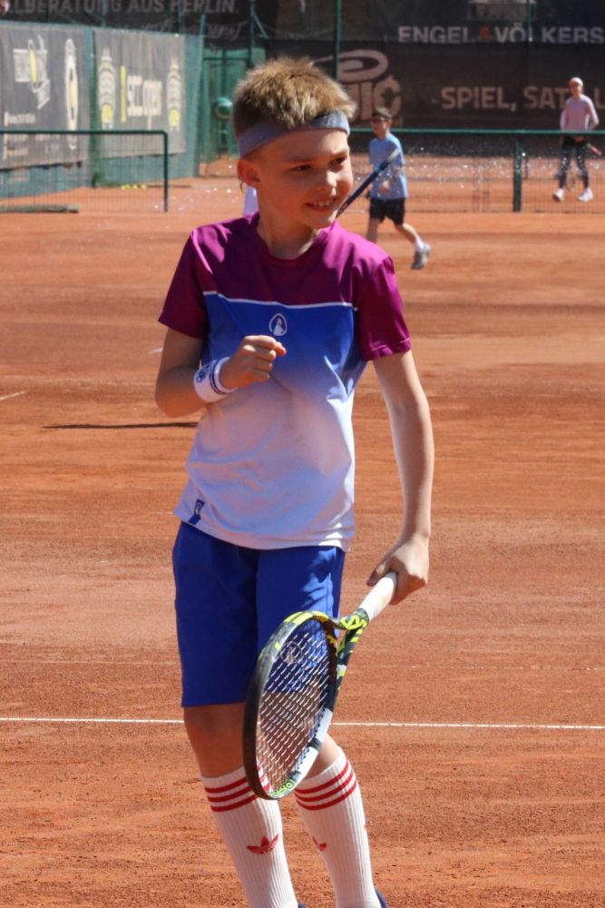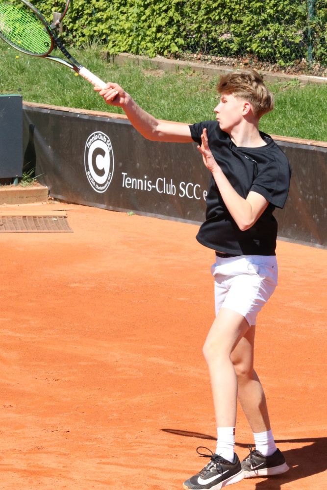 U10 männlich: Caspar Links (SCC) triumphierte im größten Feld des Turniers (32er-Tableau). Im Finale gegen Noah Brembach (Grunewald TC) entwickelte sich ein Match auf höchstem Niveau, das „Caspi“ nach einem knappen ersten Satz im Tiebreak schließlich mit 5:4 und 4:2 für sich entschied.